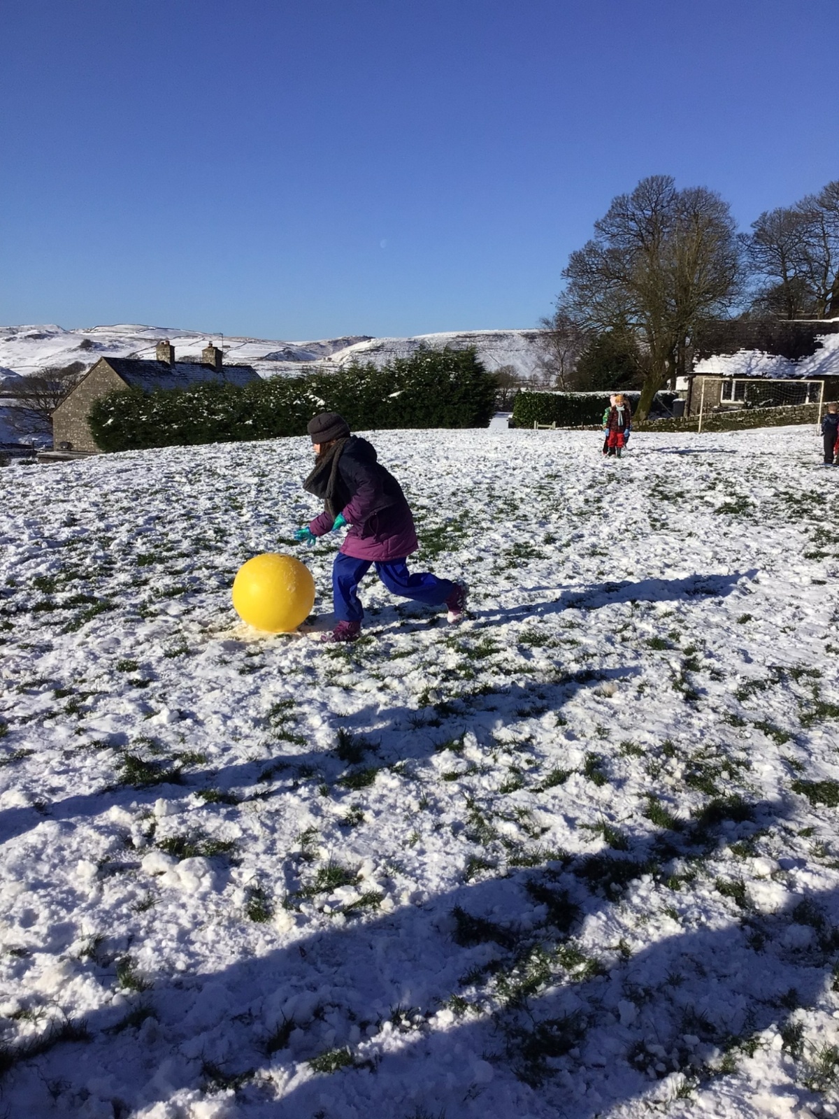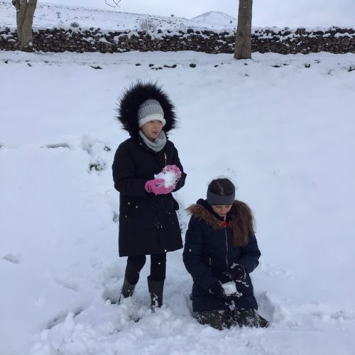 The snow didn't stop some of the staff and children from getting to school. So we made the most of the snowy weather and took the classroom outdoors. We made different-sized snow balls to see which travelled furthest and snow blocks to create igloos in our science lesson. During PE we did a relay race.
