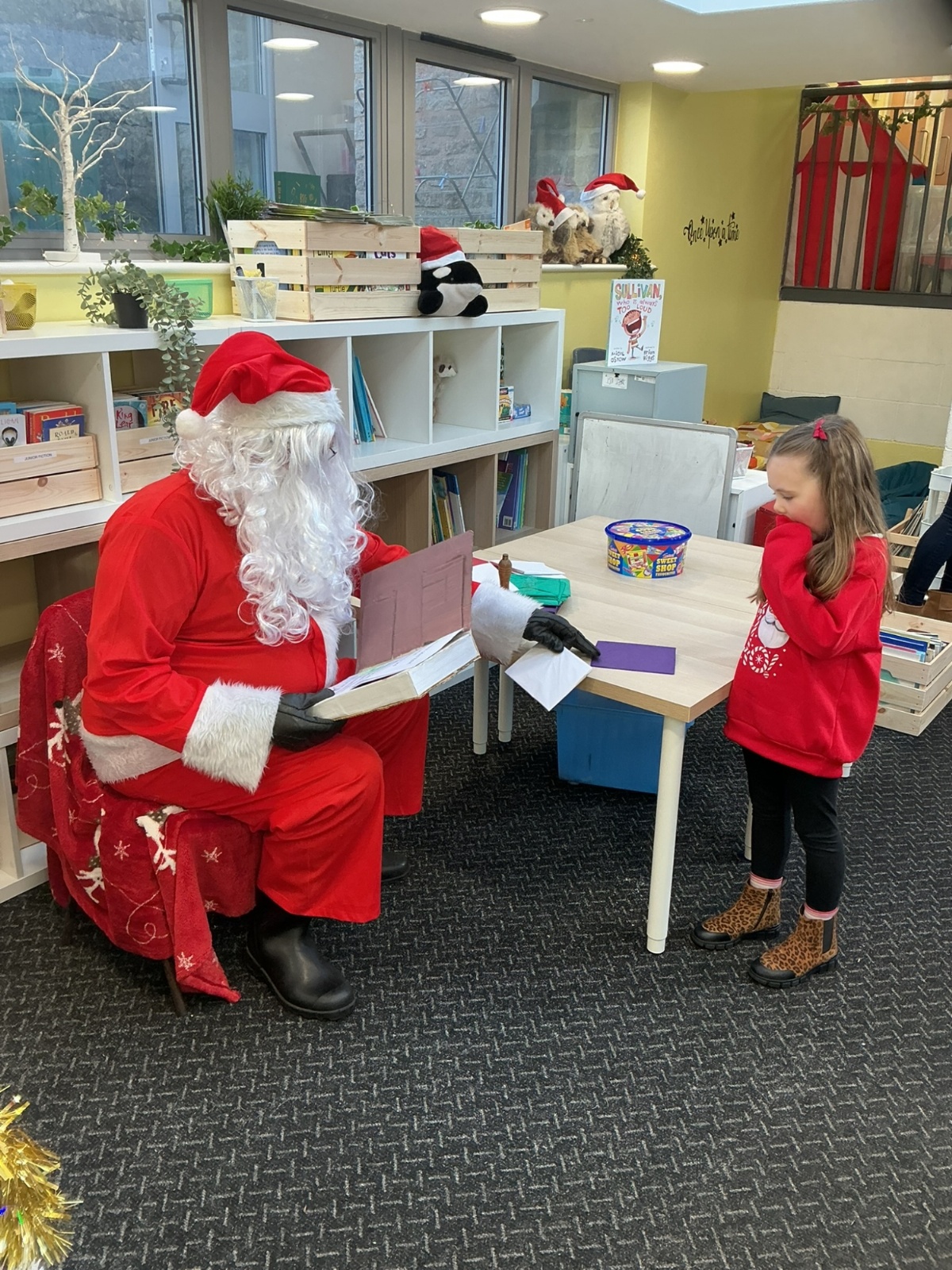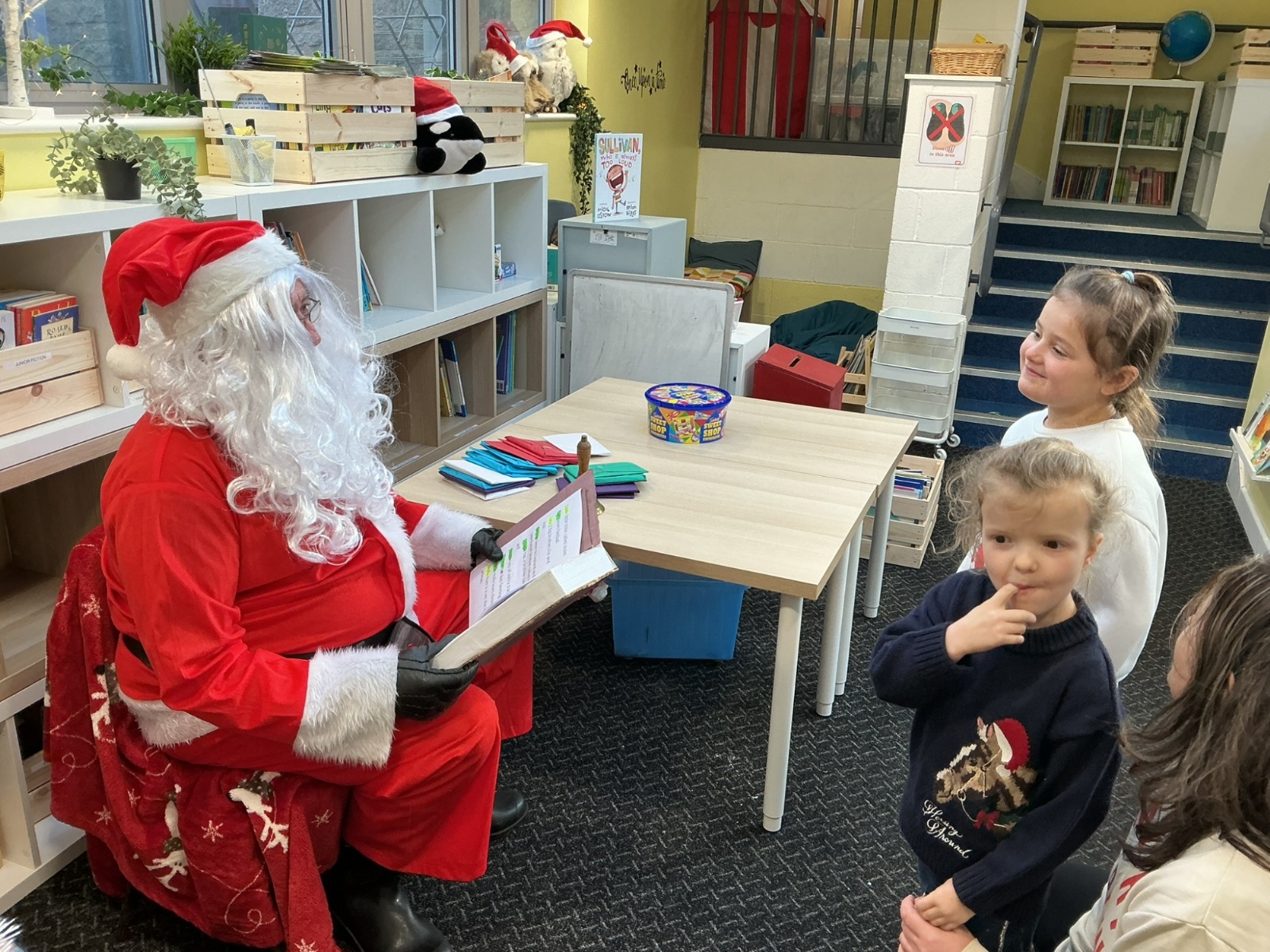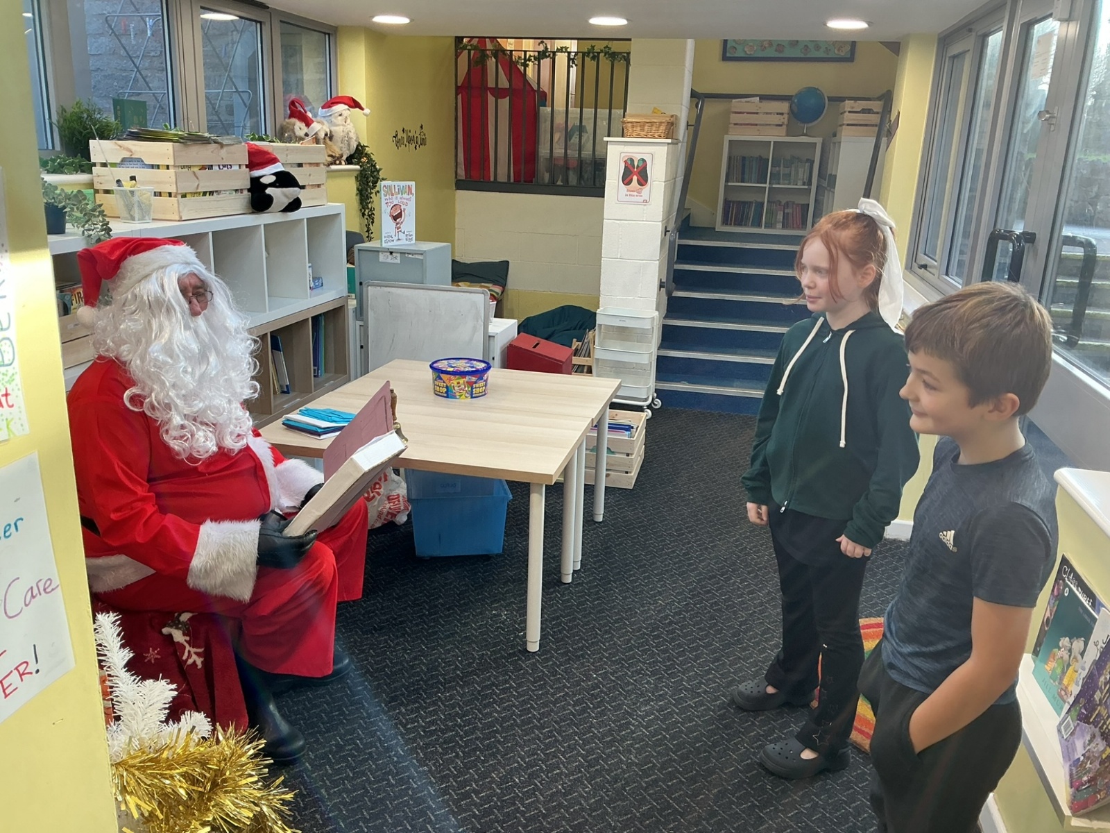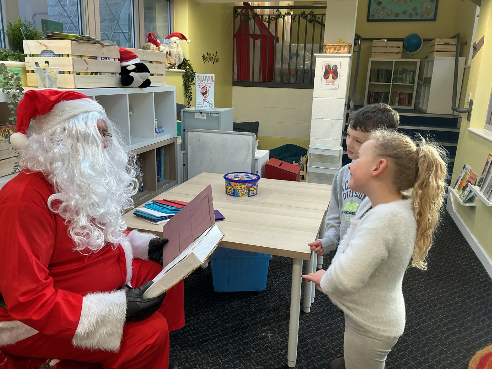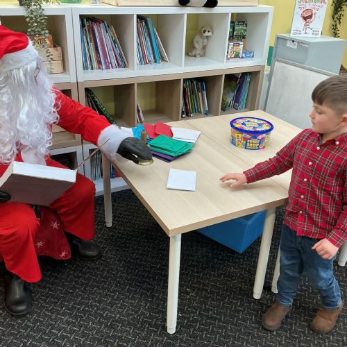 Santa popped into school to see the children. Thank you, Santa!